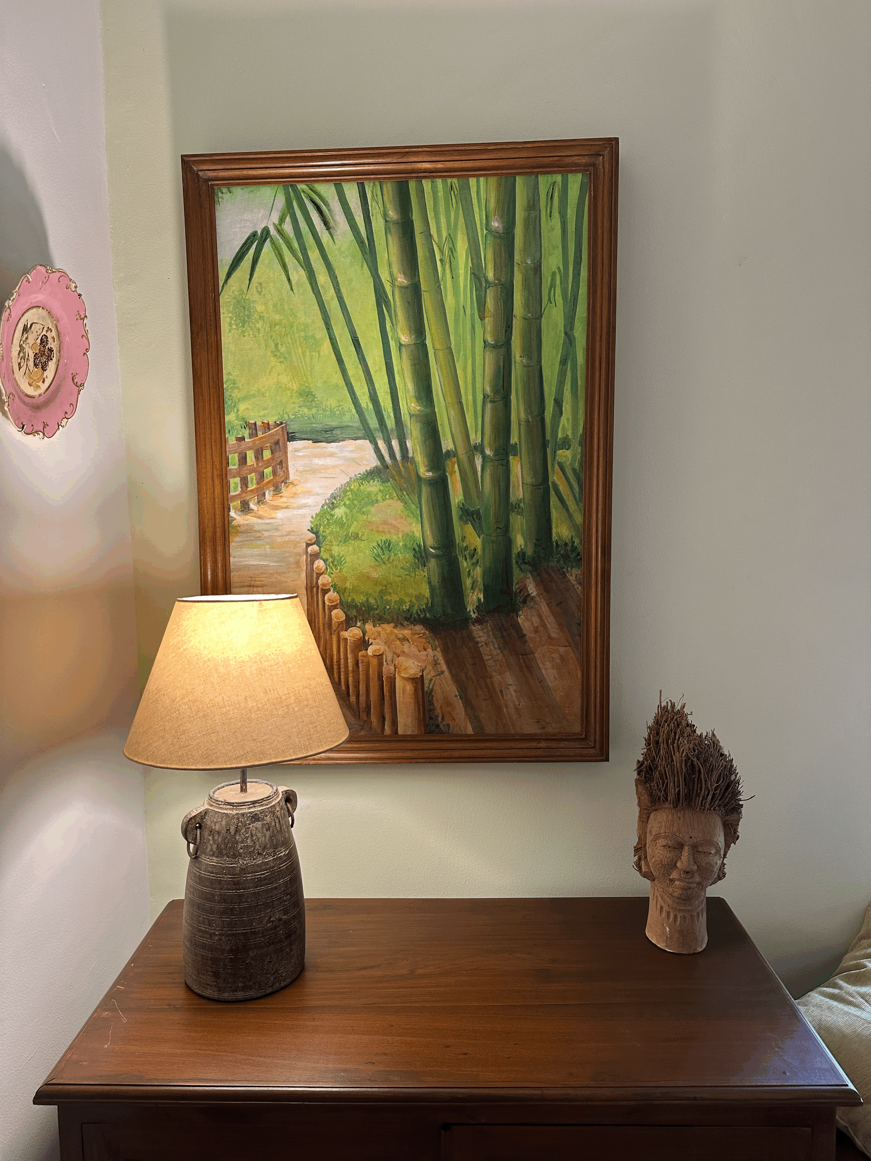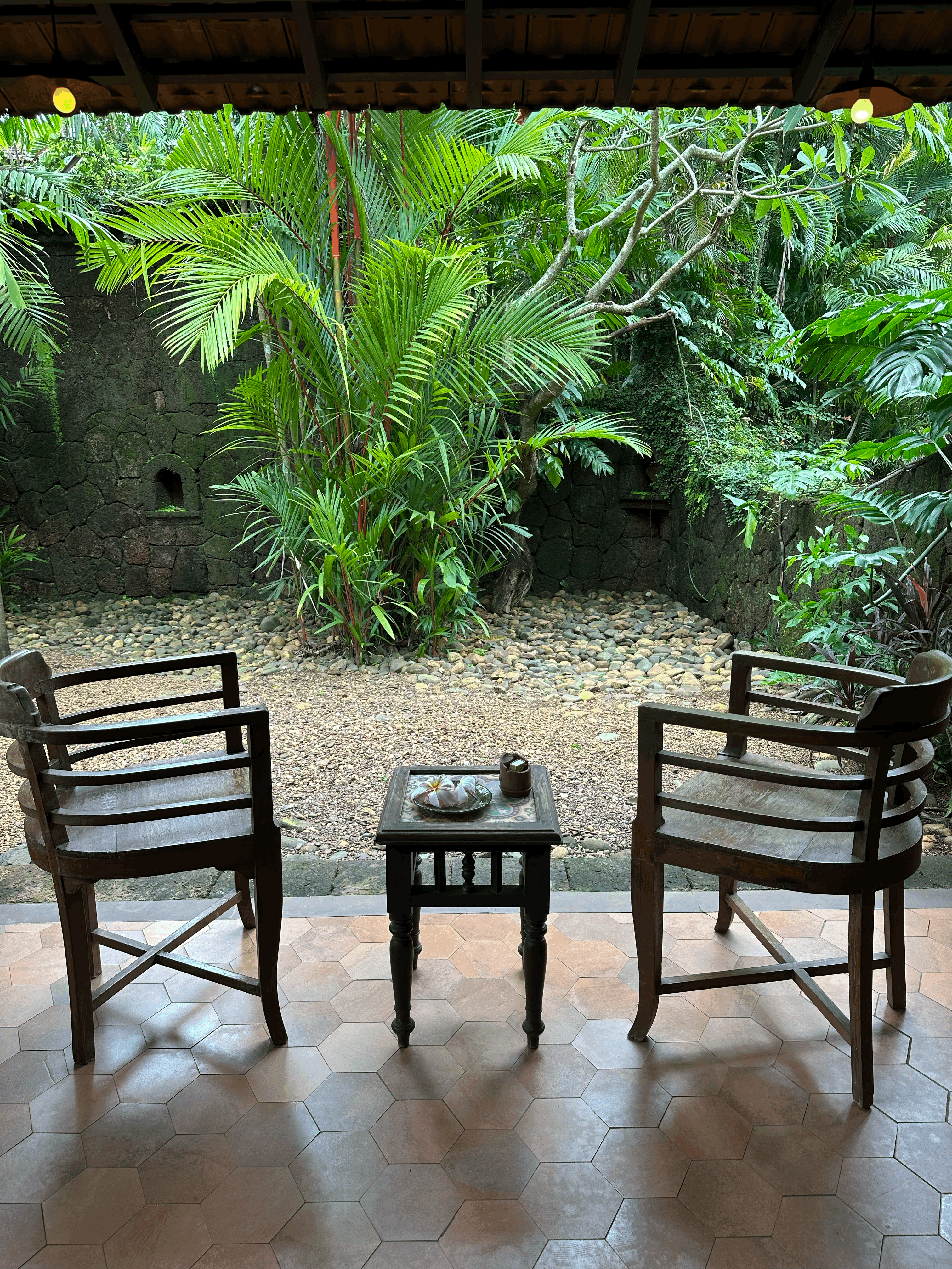 The Bamboo Suite is a charming, nature-kissed retreat with vintage wooden furniture, lush garden views, and serene traditional elegance.